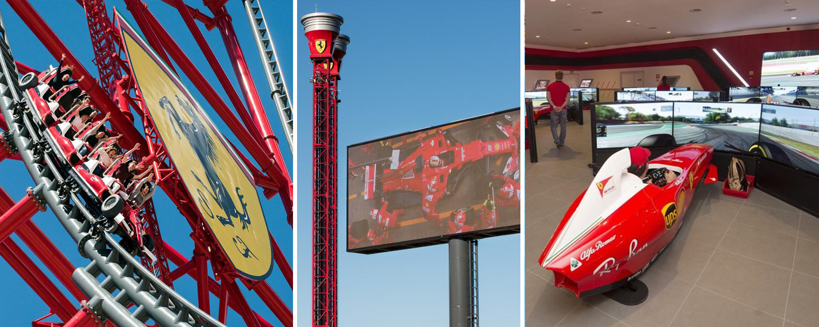 Glavna atrakcija parka je Red Force, najvišji in najhitrejši vlak smrti na naši celini. Visok je 112 m in doseže hitrost od 0 do 180 km/h v 5 sekundah. Ferrari Land obiskovalcem ponuja tudi 500 m dolgo dirkališče, 55 m visok prosti pad, simulatorje F1 z merjenjem najhitrejšega postanka ter mnoge druge značilnosti italijanske ikone Ferrari.